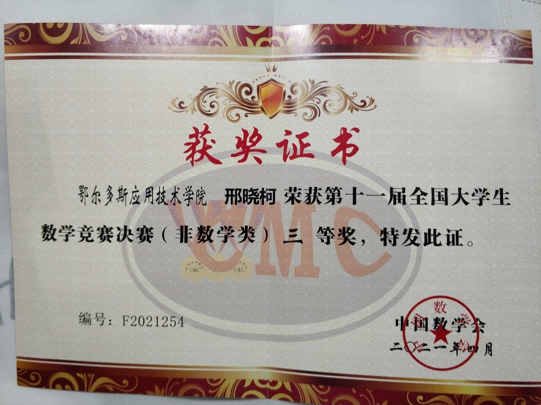 从2020年9月开始,为了在全国老员工数学竞赛中取得好成绩,同时也为了激发公司学子学习数学的热情和兴趣,数学与计算机工程系组织教师对从全院选拨出来的近30名员工进行为期两个月的集中辅导。功夫不负有心人,在2020年10月底举行的第十二届全国老员工数学竞赛初赛中,公司学子取得了内蒙古赛区一等奖2项,二等奖8项,三等奖10项的优异成绩,并有一名员工获得了决赛资格。由于疫情影响,第十二届全国老员工数学竞赛决赛推迟在2021年4月17日举行。接到决赛通知后,我系指导教师和参赛员工积极备战,最终公司员工邢晓柯从来自31个赛区604名决赛选手中脱颖而出,取得了非数学专业全国三等奖的好成绩。