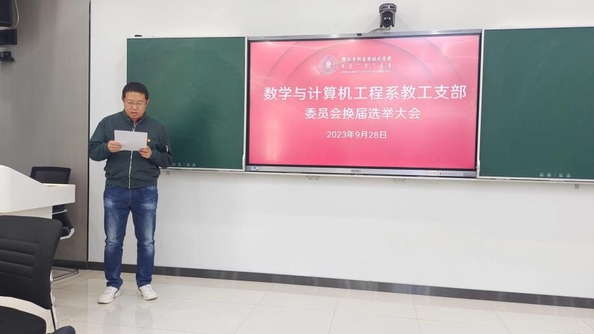 在换届选举环节,张晓娇同志宣读换届选举办法,经全体党员差额选举,产生新一届数学与计算机工程系教工党支部委员会。最终,郭松同志当选为支部书记,于琳芝和萨日娜同志分别当选为宣传委员和组织委员。