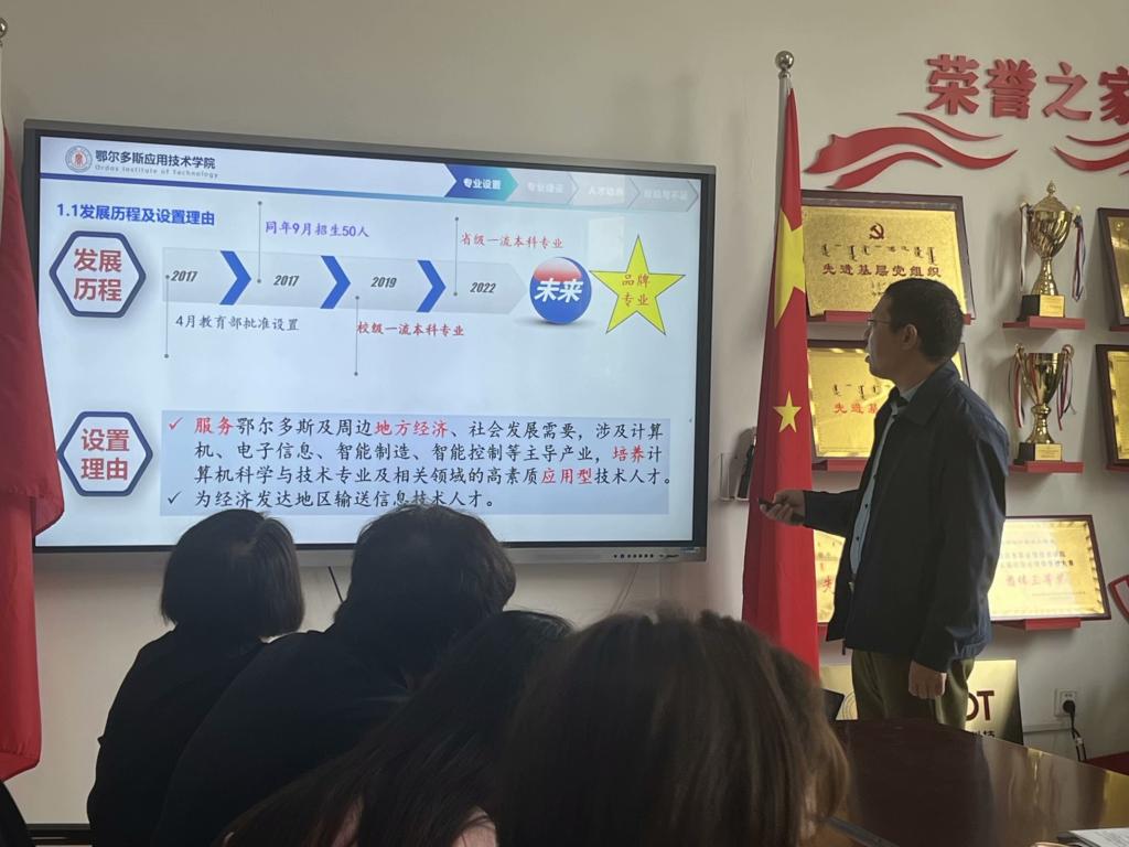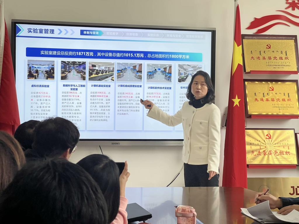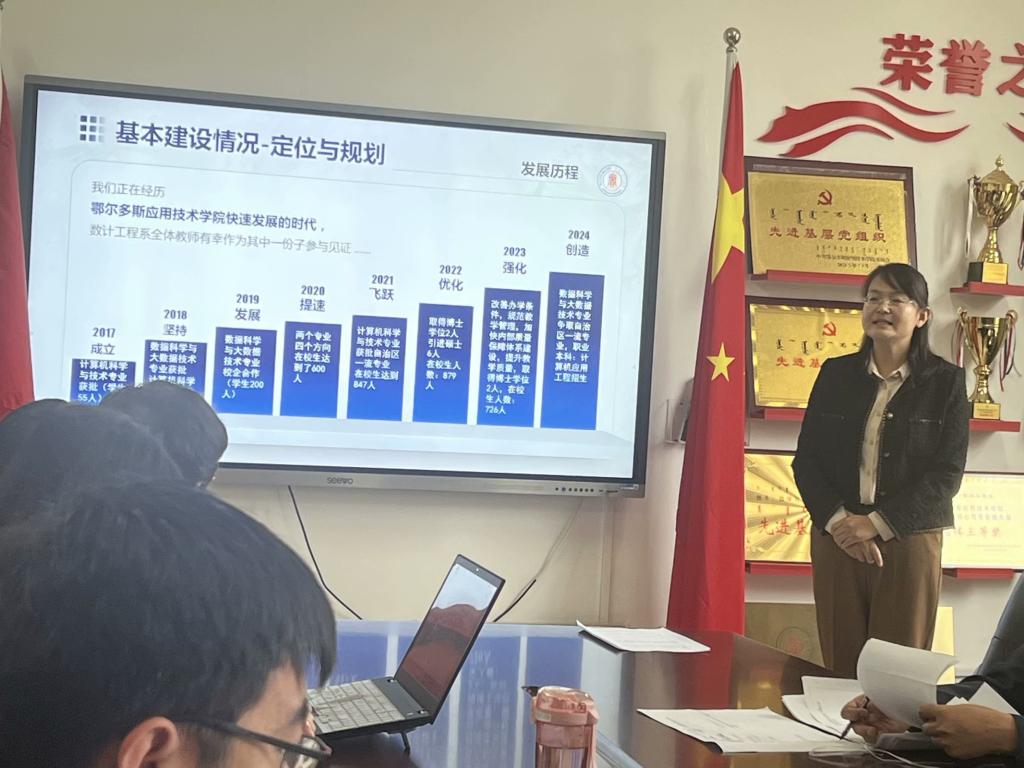 金涛副主任从数学与计算机工程系教学管理情况、办学设立与发展定位、建设成果、目前存在的问题以及持续改进的思路等方面展开系部介绍。