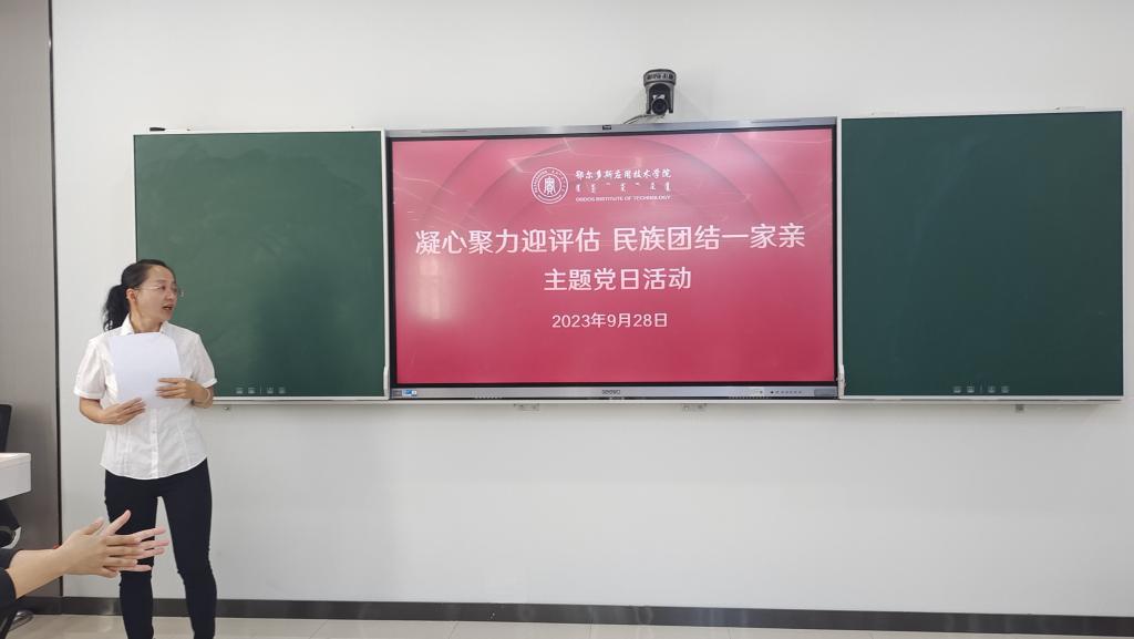 为进一步树立创新意识,让群众广泛参与宣传月活动,2023年9月28日,党总支书记孙玉琴、教工党支部书记张晓娇在知行楼105组织“凝心聚力迎评估 民族团结一家亲”党日活动,全体教职工参与“第40个全市民族团结进步活动月”知识竞答,从民族团结进步、铸牢中华民族共同体意识和本科教学合格评估等20道题。