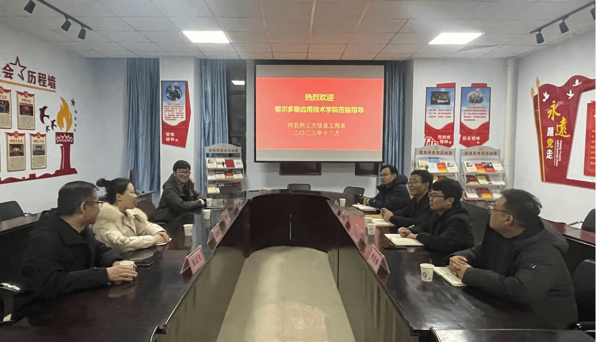 13日下午,白红英副主任率队赴河北科技工程职业技术大学进行交流与调研。在此次活动中参观了几个创新工作室,并同河北科技工程职业技术大学信息工程系党总支书记徐建平、系主任冯磊、系副主任张小志以及大数据教研室主任李洪燕进行了座谈。座谈会上,徐建平书记介绍了河北科工大信工系的基本情况和发展历史,随后冯磊主任、张小志副主任和李洪燕主任分别介绍了信工系的人才培养模式、依托产业公司进行校企合作的基本模式以及以“创新工作室”为依托的办学特色。白红英副主任和张云飞主任先后介绍了我系的发展历程和基本情况以及人才培养模式与特色。双方就拓宽校企合作思路、依托产业公司开展校企合作的经验与做法、发展和创新人才培养模式、建设“创新工作室”的经验等议题进行了深入交流和探讨。此次调研访问为我系同河北科工大信工系开展校际、系间互访和交流活动提供了新的契机。