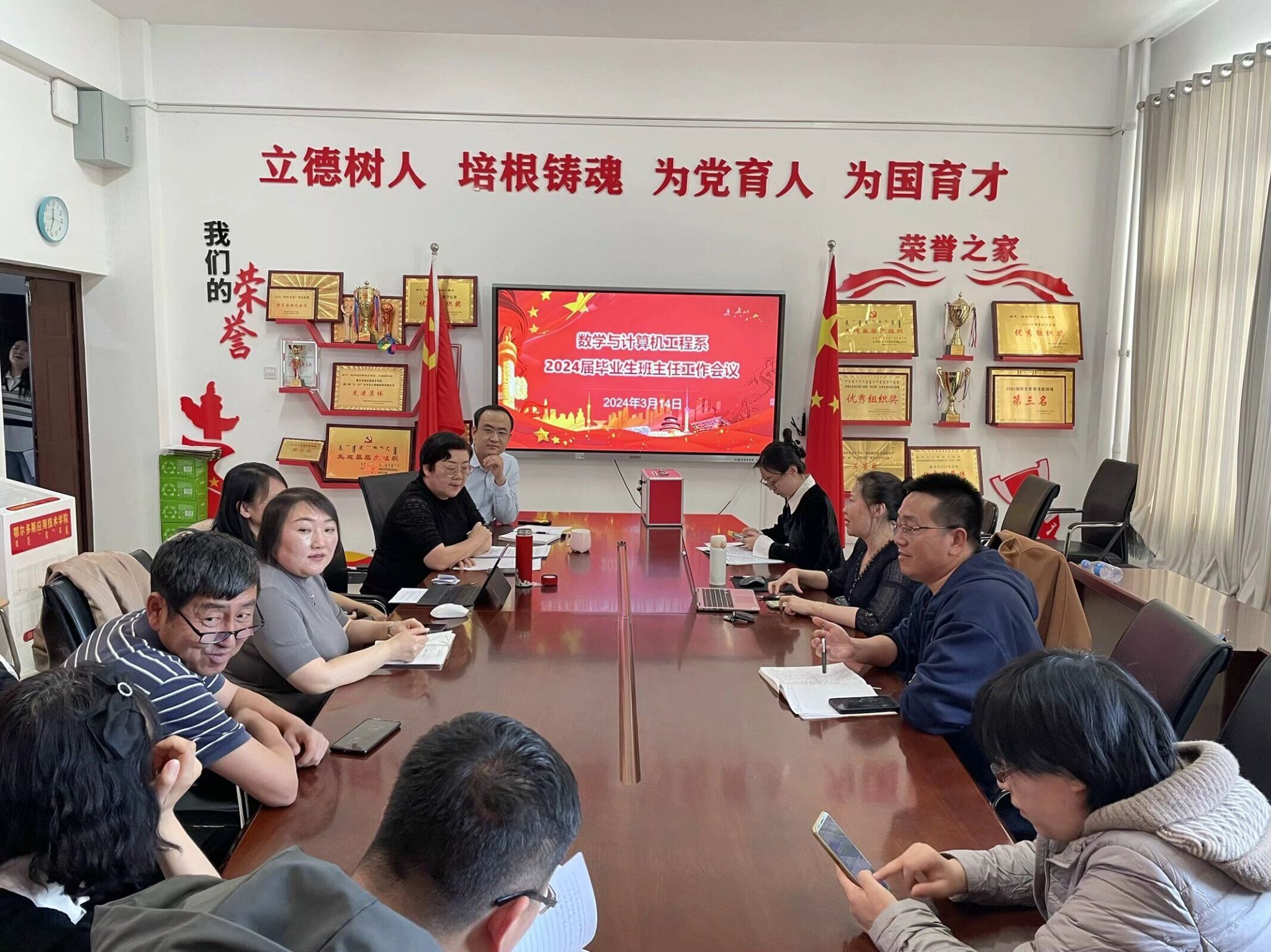 2024年3月14日,数学与计算机工程系召开2024届毕业班班主任工作会暨就业推进会,会议由党总支书记孙玉琴主持,党总支副书记萨如娜在会上就毕业生返校及就业工作做了部署,全体2024届毕业班班主任参加了会议。