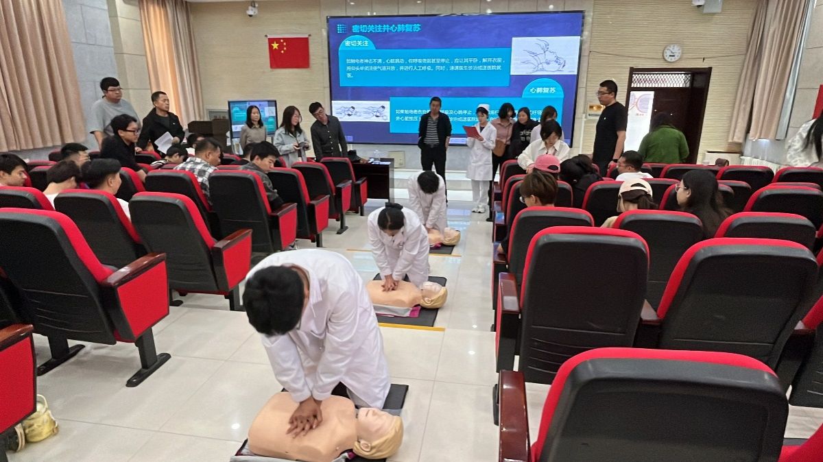 为进一步普及应急救护知识,增强有关工作人员急救意识,实验实训中心联合医学系开展急救知识和技能演示,医学系同学就如何判断被救助者属于心肺复苏患者、胸外心脏按压、人工呼吸以及创伤救护等知识进行了详细讲解,并使用模拟人进行演示操作。