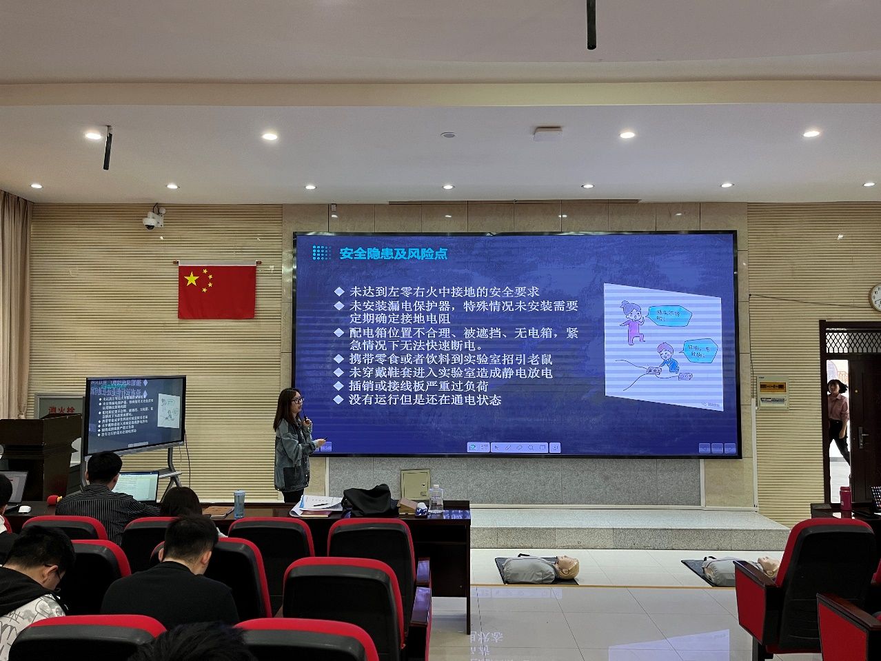 为进一步强化实验室安全管理工作,进一步强化数学与计算机工程系师生实验室安全意识,提高实验室安全知识水平,提升实验室风险防范能力,我系于5月9日下午在博学楼102报告厅组织开展了实验室安全教育培训会,实验实训中心实验室负责人李淑佳做“实验室用电安全预防以及应急措施”培训会,并邀请医学系员工进行演示。本次培训讲座由实验实训中心主任王慧主持,实验实训中心全体人员、全体教职工、员工代表参加了本次培训。
