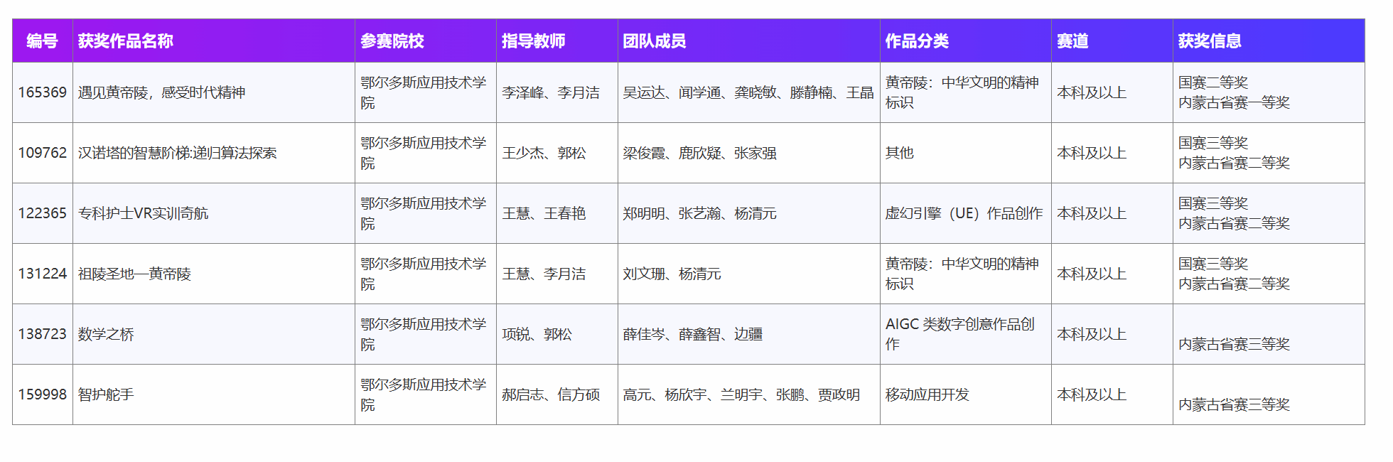 其中,数学与计算机工程系团队凭借参赛作品《遇见黄帝陵,感受时代精神》荣获国家级二等奖,同时在此前的省赛中荣获内蒙古自治区一等奖。