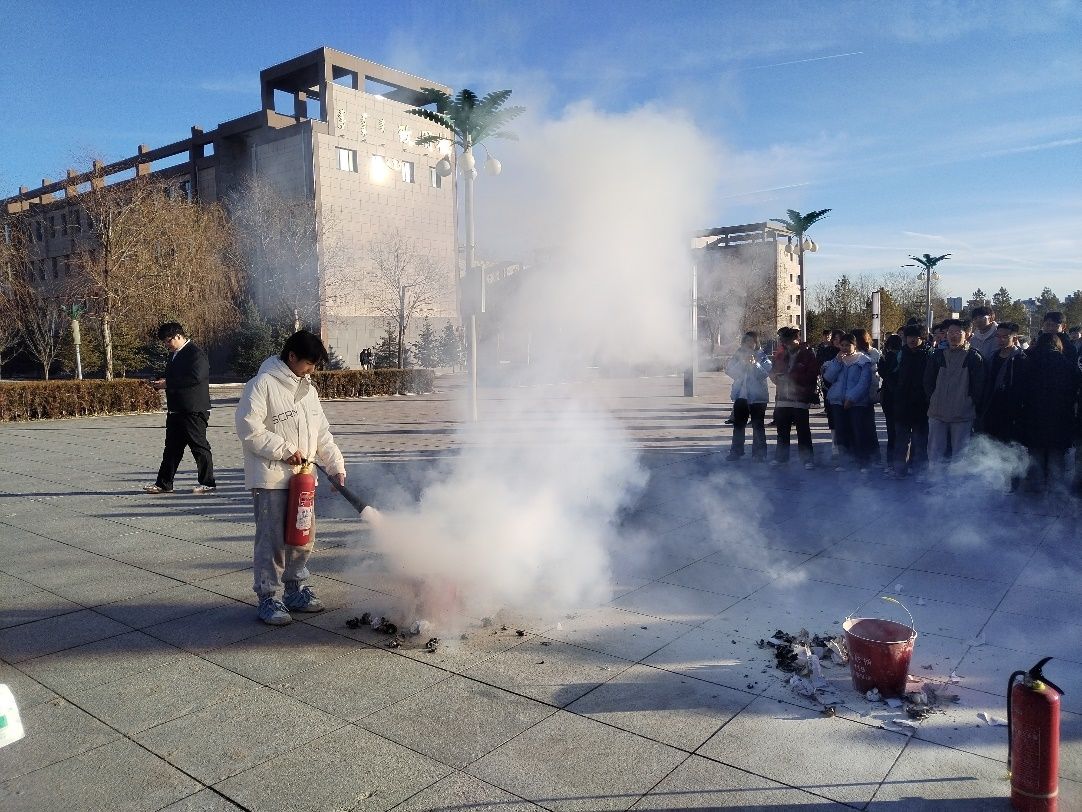 第三环节灭火器实操演练。消防疏散演练结束后,所有疏散人员于指定区域集合,在任课老师整队下,全体人员保持整齐有序的队列行进至百知行广场处进行灭火器实操演练。现场安排学习灭火器等专业工具的使用方法讲解、并进行了现场演示,提升了消防意识与技能。