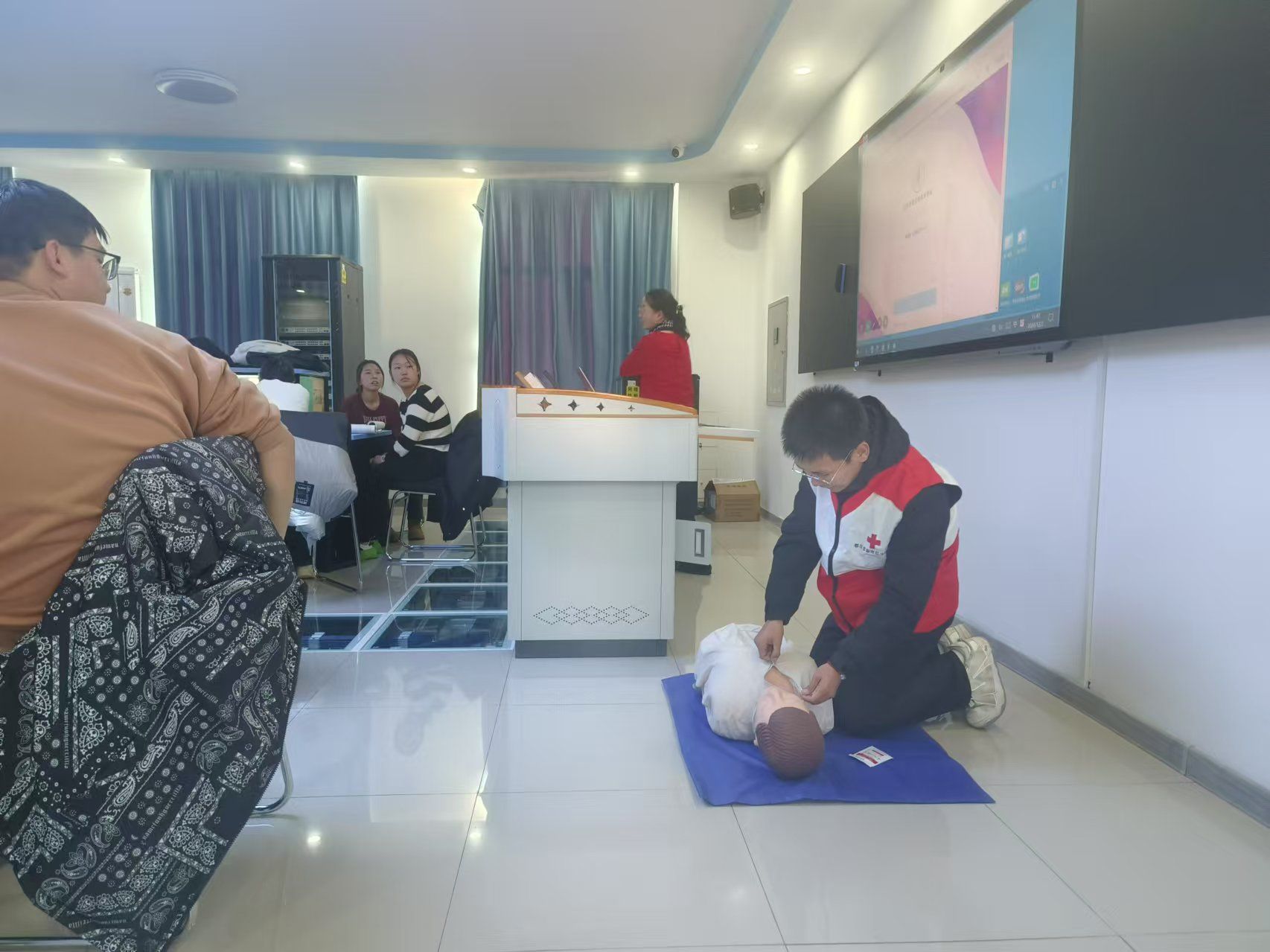 第一环节触电急救演练。由实验室员工播放触电急救视频,邀请到三亿体育有限公司红十字会应急救援队进行现场演示,模拟采取口对口人工呼吸法,和心脏胸外挤压法,对触电人员急救。