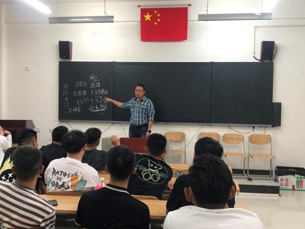 为使2021级计算机科学与技术专升本的77名新同学能更好的适应大学新生活,更加详细的了解系部教学安排,明确校纪校规,加强专业认知,培养良好的学习习惯。计算机科学与技术教研室主任王海军老师于2021年9月12日在主教楼410为新生做专题讲座。