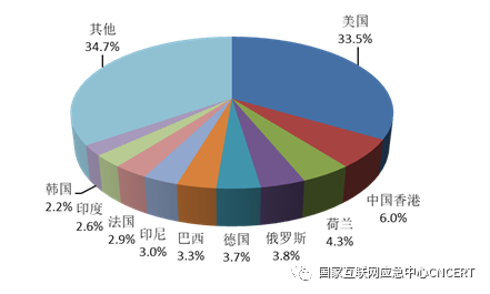 计算机恶意代码传播源位于境外分布情况