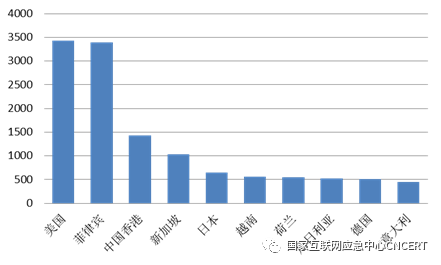 境外向我国境内网站植入后门IP地址所属国家或地区TOP10