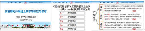 2020年3月22日,马丽老师在公司给全体教师做了首场线上教学经验分享讲座“疫情期间线上教学的实践与思考”,讲座得到老师们的一致好评,普遍反映收获很大。马丽老师提出以“学习成效”为中心的教学理念,提出“大课前-大课中-大课后,小课前-小课中-小课后”的创新教学设计方法、利用雨课堂助力智慧教学的开展,得到教师们的认可;马丽老师提出的棒棒糖教学法很受员工们的欢迎;马丽老师的线上教学模式可以很好的保障员工的线上学习效果。