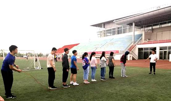 2019年5月23日下午四时,数学与计算机工程系老员工心理健康教育户外活动于操场顺利进行。数学与计算机工程系团总支娜仁老师组织了本次活动,参加活动人员40人,分别被分为四组每组10人,以组单位进行游戏和互动,工作人员10人。