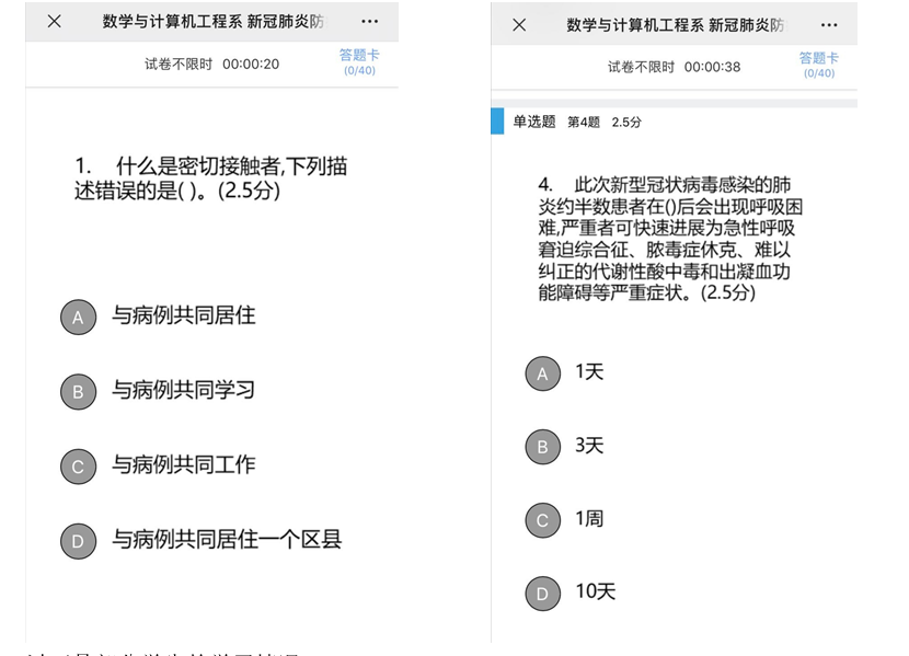 疫情就是命令,防控就是责任。新型冠状病毒感染的肺炎疫情牵动着亿万人民的心。为进一步加强新型冠状病毒感染的肺炎防护知识,提升全体同学应对能力,增强防护意识、提高防护能力,实现群防群治目的,进一步做细做实疫情防控工作,增强全校师生防御意识,我系决定在2020年5月30日全系开展新冠肺炎疫情防控知识线上测试活动。