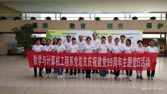 为庆祝建党99周年,坚定初心使命,激励广大党员干部继承和发扬党的光荣传统,进一步增强党组织的凝聚力、向心力、战斗力,7月10日,数学与计算机工程系党总支组织全体党员走进恩格贝生态示范区,开展庆祝建党99周年红色主题党日活动,部分非党员教师也参加了此次活动。