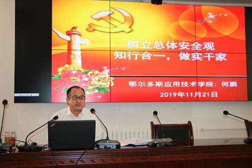 为学习贯彻习近平新时代中国特色社会主义思想和党的十九大精神,深入推进“不忘初心,牢记使命”主题教育,根据公司党委安排,2019年11月21日,公司党委委员、副经理何鹏在行政楼501讲授了一堂《树立总体安全观知行合一,做实干家》的党课,我系全体教师聆听了本次党课。