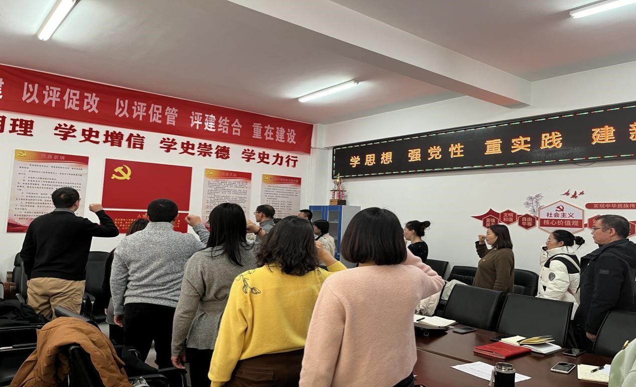四是与会全体党员进行无记名表决投票,教师党支部书记郭松同志宣布对杭晓良同志的赞成人数超过应到会有表决权的正式党员的半数,同意其按期转为中共正式党员。党龄自2023年12月27日算起。