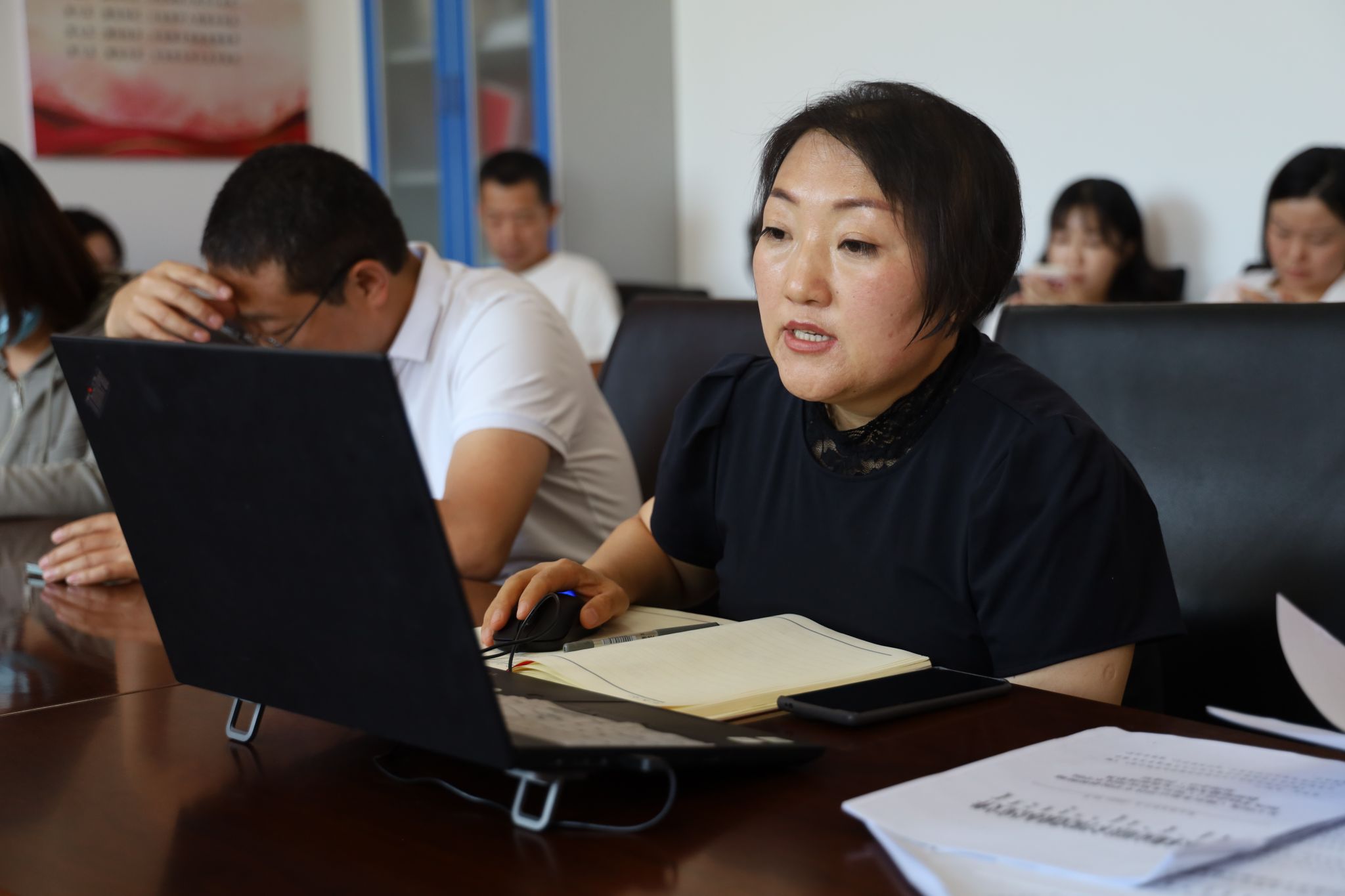 讨论过程由系党总支副书记萨如娜,党总支宣传委员白红英分别对当前的职称评审办法和基本标准进行解读,确保教师们全面了解相关政策和申报资格与流程等。