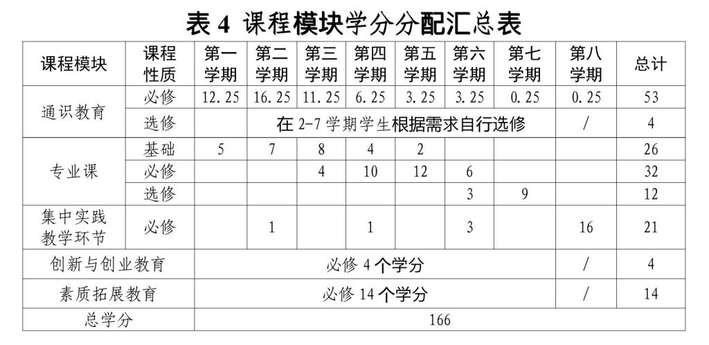 1.本专业学制4年,按照学分制管理,修业年限3-6年;