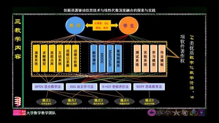 为加强我系数学和大数据教研室教学组织建设,增强教师将现代信息技术与公司产品深度融合的能力,全面提高教师教书育人能力,从而推动公共基础数学类课和大数据专业课教学高质量发展,数学与计算机工程系数学和大数据教研室近日邀请华中师范大学三级教授,湖北省名师,大学数学教学研究名师工作室主持人,大学数学湖北省教学团队负责人,华中师范大学数学类课程思政教学研究示范中心负责人方文波教授在线上为两个教研室全体教师开展了主题为“创新资源驱动信息技术与线性代数深度融合的探索与实践”的专题讲座。