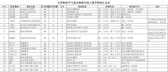 根据教育部“停课不停教、停课不停学”的要求,为切实落实自治区教育厅和公司的相关文件要求,计算机科学与技术教研室教师积极响应公司与教务处的精神和教学安排,教研室全体教师认真准备,全面推动线上课程教学工作,积极开展疫情防控下的教研活动和准备工作。教研室教师根据所授课程的特点与需求,借助公司教务处推荐使用的qq群课课堂、钉钉等多个通讯平台,以及线授课平台雨课堂、智慧树、中国大学慕课等平台开展线上教学。教学准备前期教师们积极参加线上培训,相互学习并经验分享,大部分老师在短时间内迅速掌握了网上授课技能。