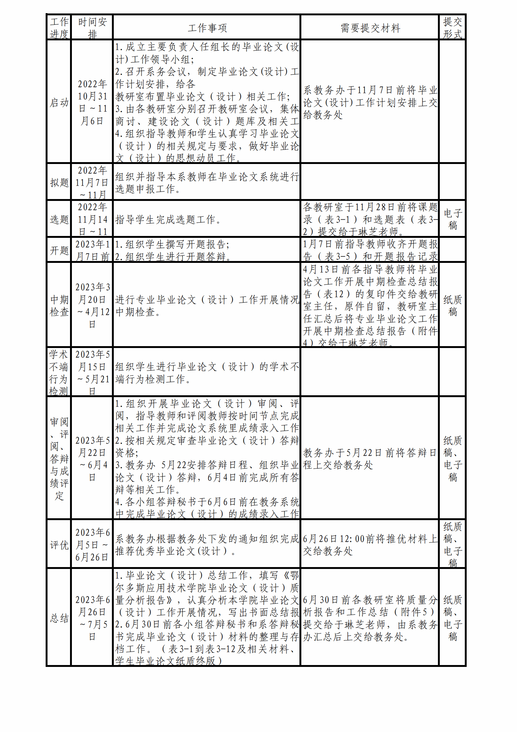2023届毕业生毕业论文(设计)工作计划安排