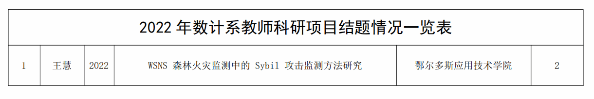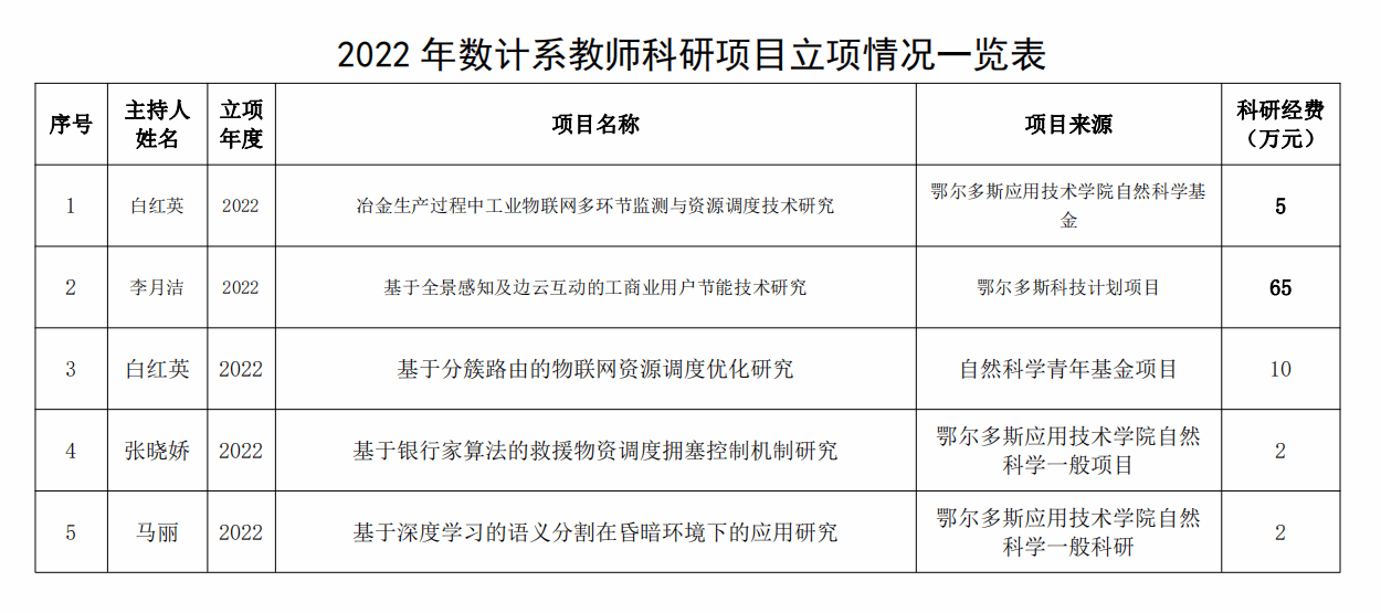 2022年数学与计算机工程系教师科研项目立项情况一览表