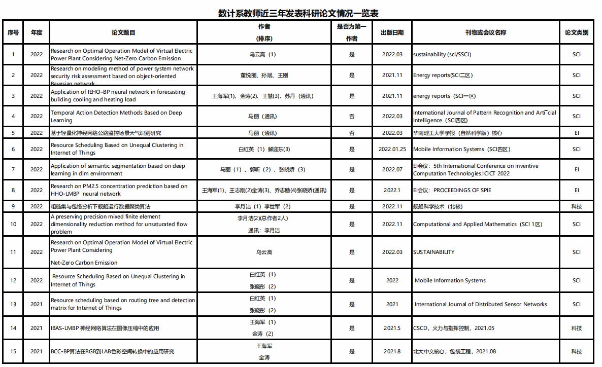 数学与计算机工程系2022年共发表科研论文12篇,其中SCI论文8篇,EI检索论文3篇,北大核心1篇。
