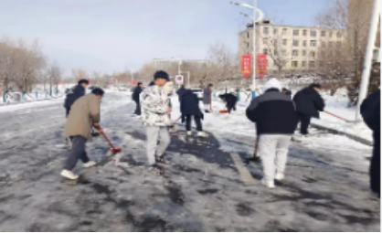 为了深入开展习近平新时代中国特色社会主义思想主题教育活动,激发同学们的爱国热情和奋斗精神,数学与计算机工程系组织了一场主题为“感党恩,听党话,跟党走”的扫雪除冰活动。