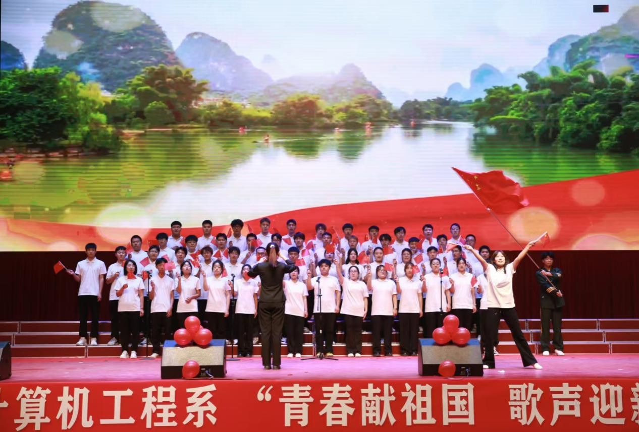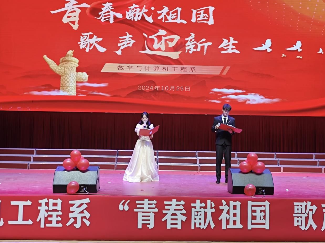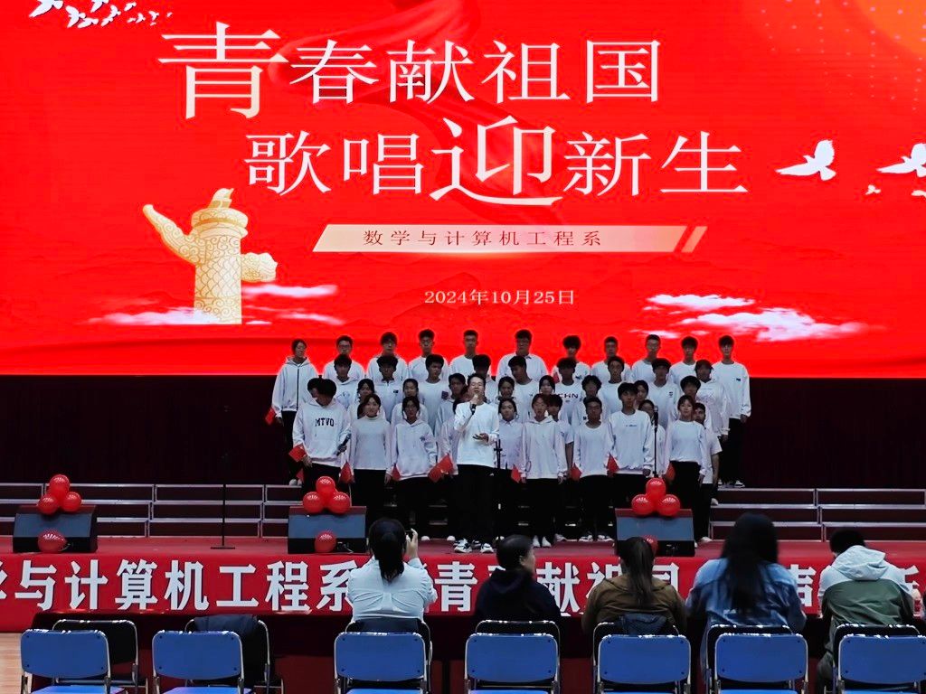 悠悠七十五载,风雨同舟;泱泱七十五载,铸就辉煌;浩浩七十五载,见证成长。为进一加强青年老员工爱国情怀,10月25日晚,数学与计算机工程系主办的“青春献祖国,歌声迎新生”师生大合唱比赛在体育馆圆满落幕。系党总支副书记萨如娜、系学工办副主任李佰超、辅导员王婧、专任教师李泽锋、周娜以及全体班主任出席了本次活动。比赛中,我系师生用满怀深情厚谊的悠扬歌声,让爱国的火花在舞台上绚丽绽放,共同在歌声中感受国家的辉煌历程与民族的伟大精神,向伟大的祖国致以最诚挚的敬意和最热烈的颂扬。