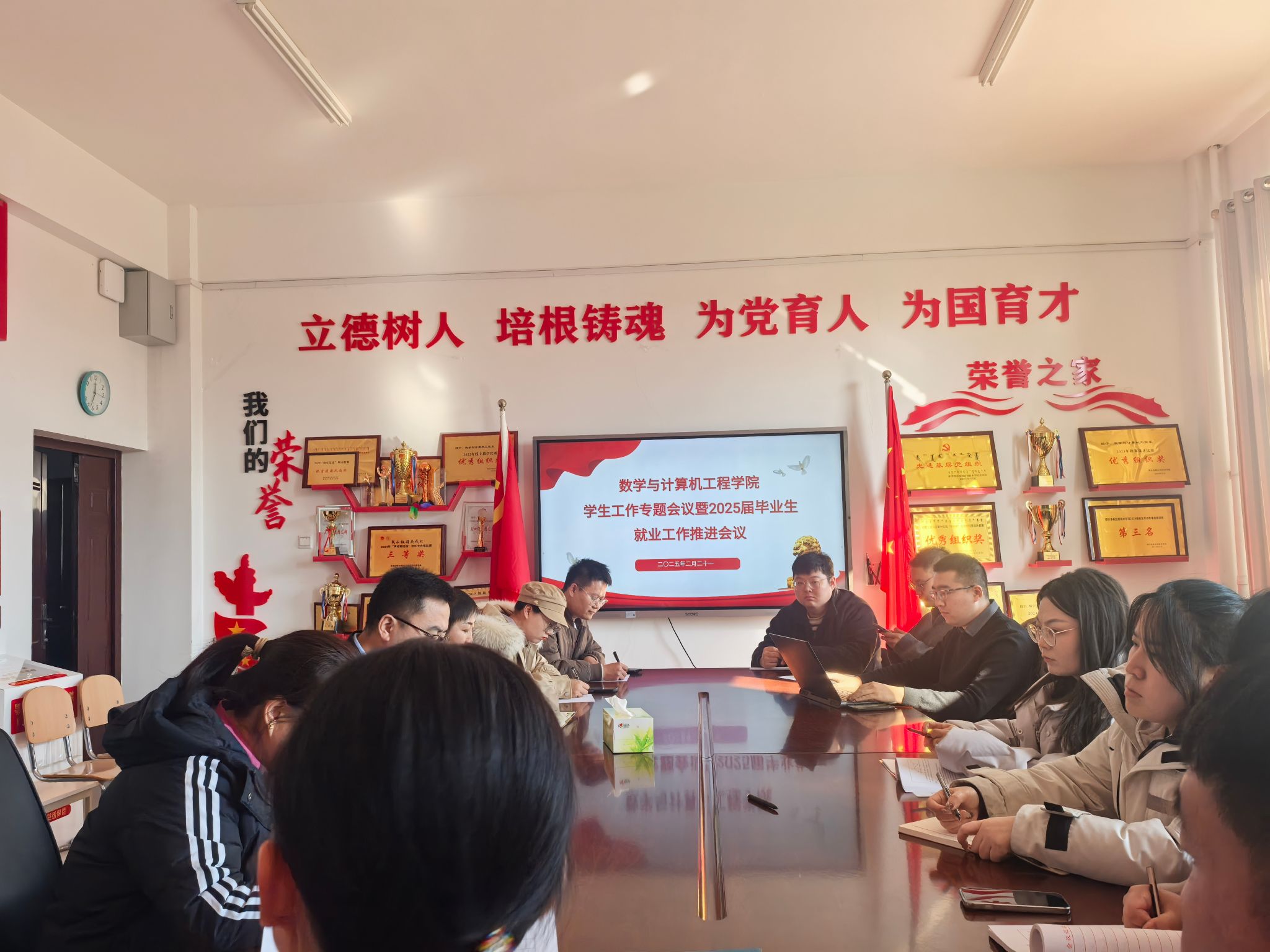 为了深入推动2025届毕业生就业工作,三亿于2025年2月21日在知行楼105室召开毕业生就业工作专题推进会。公司党总支书记贾俊峰出席会议并讲话,全体班主任、辅导员参加会议。会议由副书记萨如娜主持。