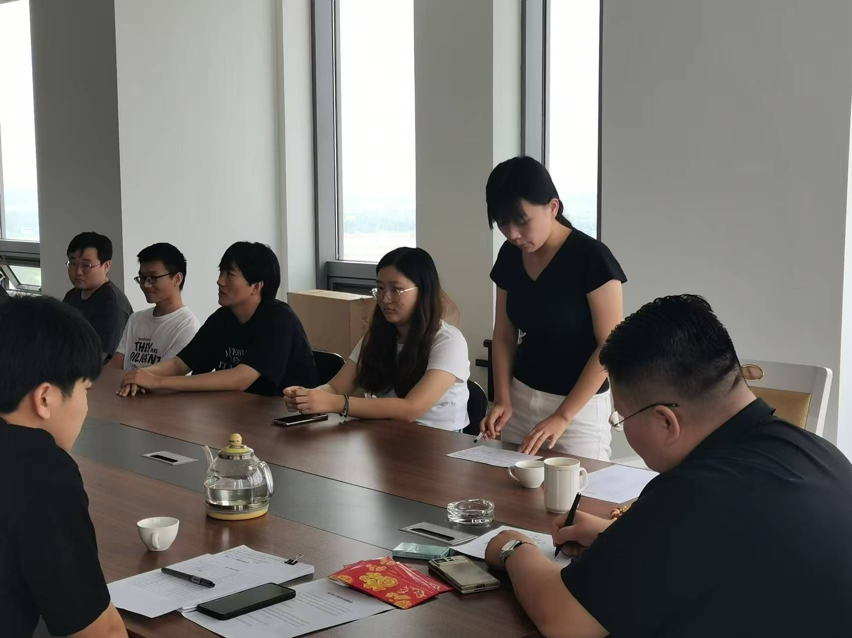 睿元文化总经理宝上越主持会议,首先由业务科、技术与设备部设备管理组、技术与设备部数据运行组、总经办四个实习岗位的同学们进行毕业实习中期的汇报。在实习过程中同学都表示在不同岗位学习到了很多不同的知识和技能,同时意识到了相互配合和团队协作的重要性,对于职场的一些基本规则、礼仪都有了初步的了解,意志品质也得到的极大的锻炼。接着,宝总对前段时间员工实习进行了总结,大部分员工的表现得到了企业的好评,同时也指出了员工们在实习过程中的一些问题和缺陷,也给出了改进的意见和后期实习的一些计划。