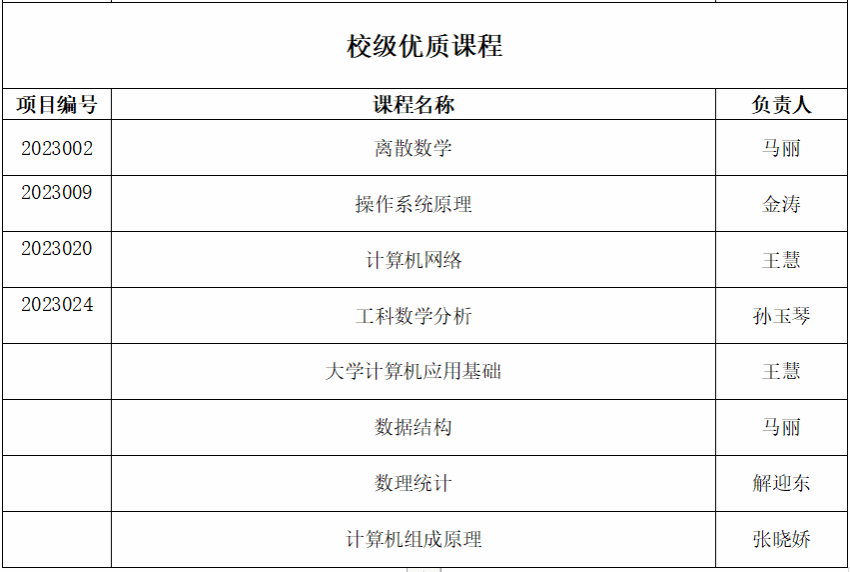 数学与计算机工程系校级优质课程